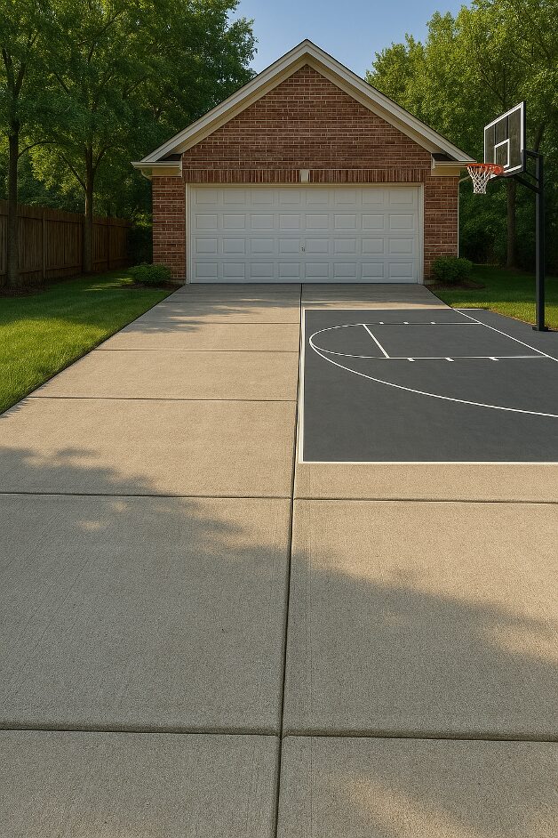 Driveways with additions can add an extra spot for fun that children can enjoy. Whether it is riding bikes, drawing with chalk, or playing basketball, an expanded concrete driveway provides a safe, smooth surface for the entire family to enjoy together.